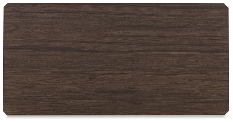 | Details | Includes coffee table and 2 end tables, Made with MDF substrates, decorative laminate and steel, Tabletop with dark brown replicated walnut wood grain finish, Tubular steel legs with plated goldtone finish, Adjustable levelers included, Assembly required | |