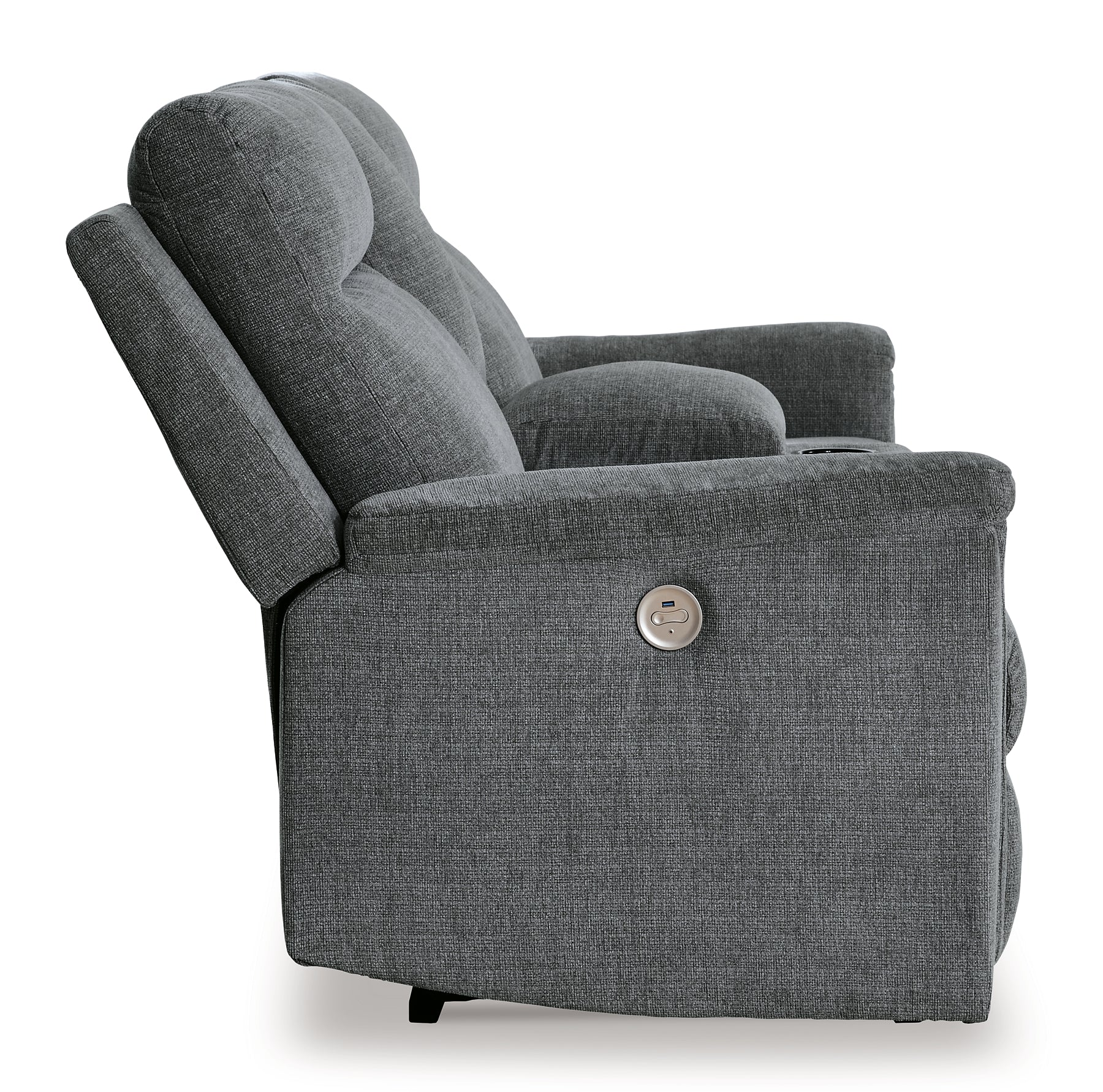 The ability to go from fully upright to relaxed and stretched out, all at the touch of a button, awaits. A beautiful blend of plush upholstery and casual style, this power reclining loveseat with console invites you to sink into ultimate comfort. Easily tuck away remotes or gaming controllers and keep drinks close by with its handy console. Whether you're hosting guests or lounging alone, you’ll find it hard to leave your living room—that’s a given.