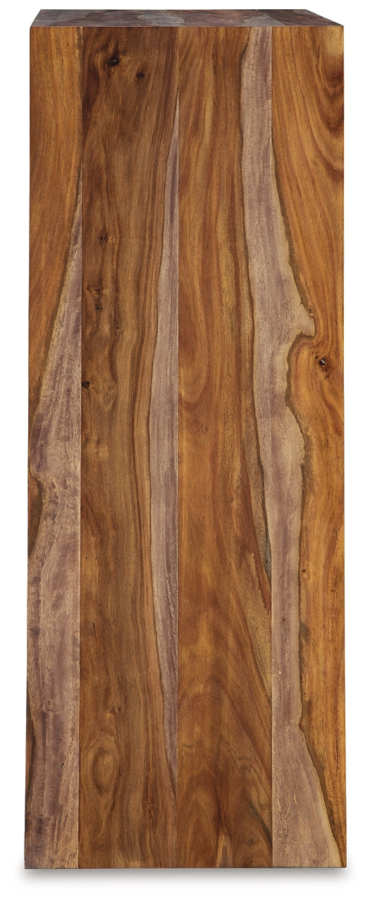 | Details | Made with sheesham wood, veneer and MDF substrate, Clear natural wood-tone finish, Front frame with thick beveled edge, 5 smooth-gliding drawers with fully finished interior, dovetail construction and heavy duty ball-bearing side glides | |
