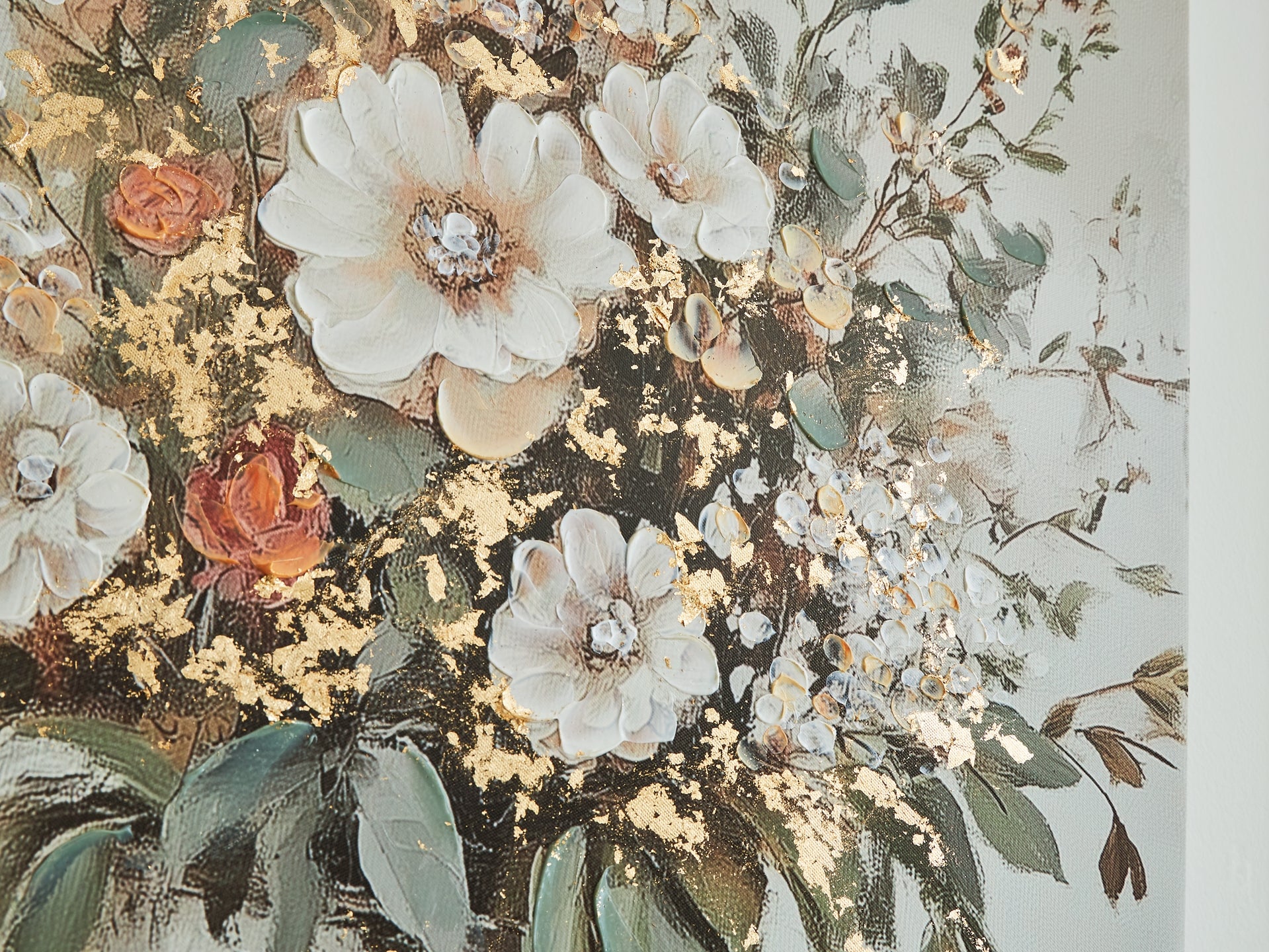 | Details | Set of 2, Gallery wrapped canvas, Hand painted and foiled embellishment, Sawtooth bracket for hanging, Vertical hanging only, Due to the hand crafted nature of this product, some variations may occur | |