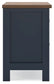| Details | Made with hardwood solids, mindi wood veneer and MDF substrates, Two-tone finish features a dark slate blue with a light brown wood-tone top, Nickel-tone metal knobs, 2 drawers with fully finished interior, dovetail construction and heavy duty ball-bearing side glides | |