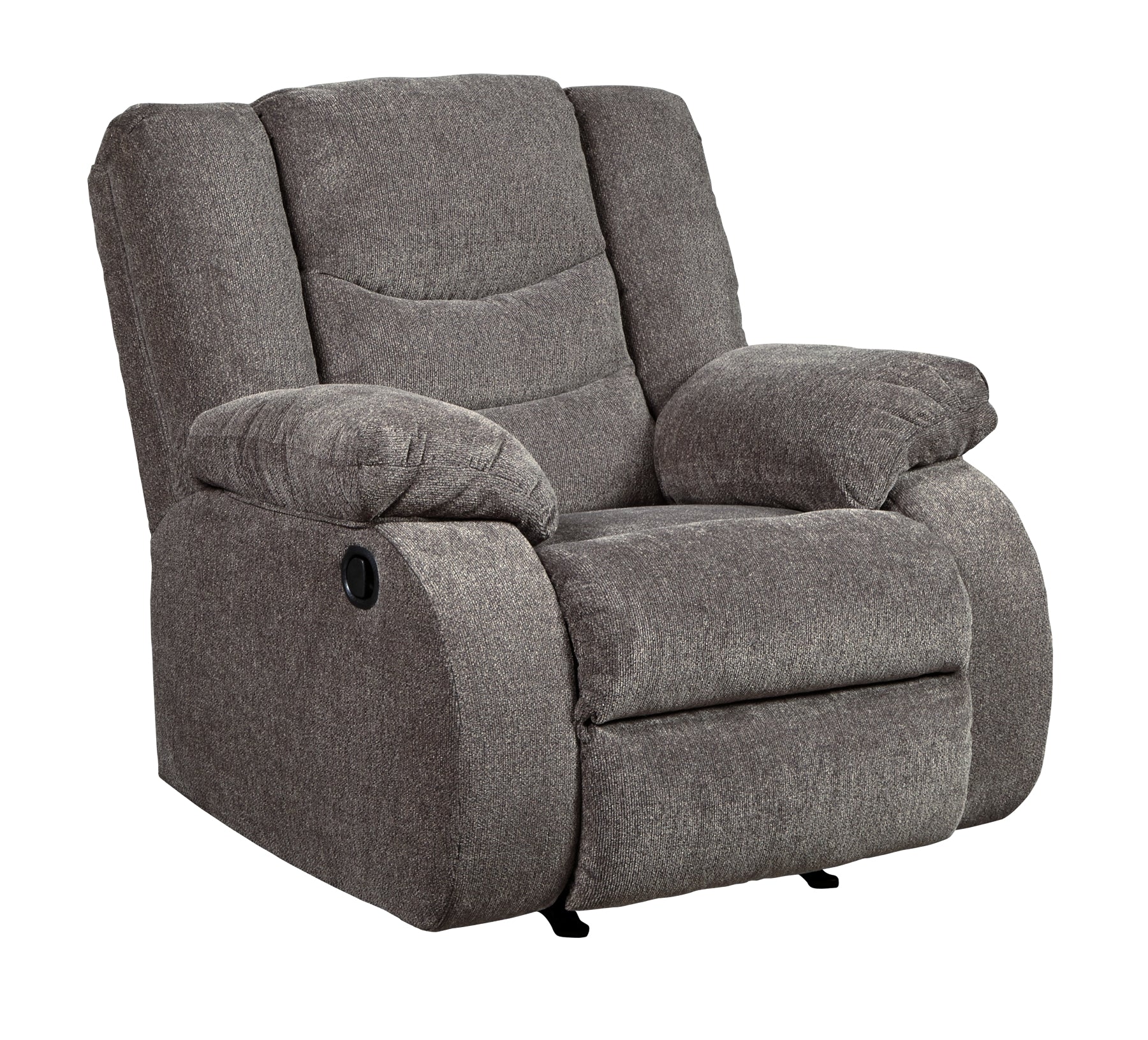 This rocker recliner puts the win in winning. Its waterfall back design and doubly plump pillow top arms team up with soft chenille fabric to go for the goal. Ample seating room makes the comfort possibilities endless. Sit back and relax. You won’t go wrong with this recliner.